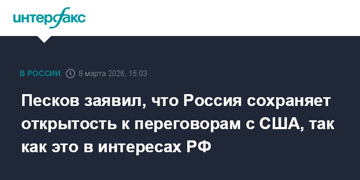 Песков заявил, что Россия сохраняет открытость к переговорам с США, так как это в интересах РФ
