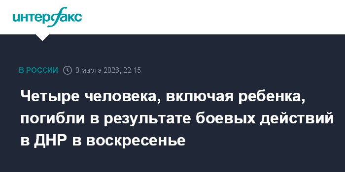 Четыре человека, включая ребенка, погибли в результате боевых действий в ДНР в воскресенье