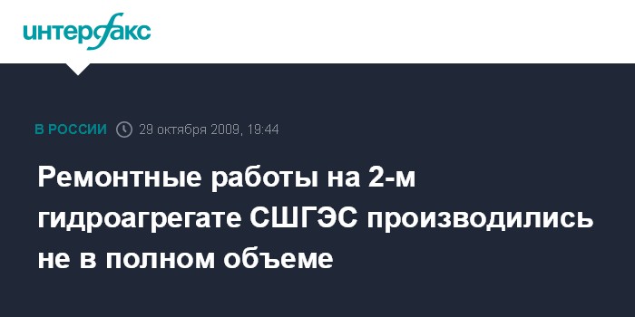 Ремонтные работы на 2-м гидроагрегате СШГЭС производились не в полном объеме