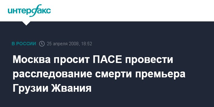 Москва. 25 апреля. INTERFAX.RU - Россия призывает ПАСЕ возобновить работу по выяснению причин смерти Зураба Жвании.