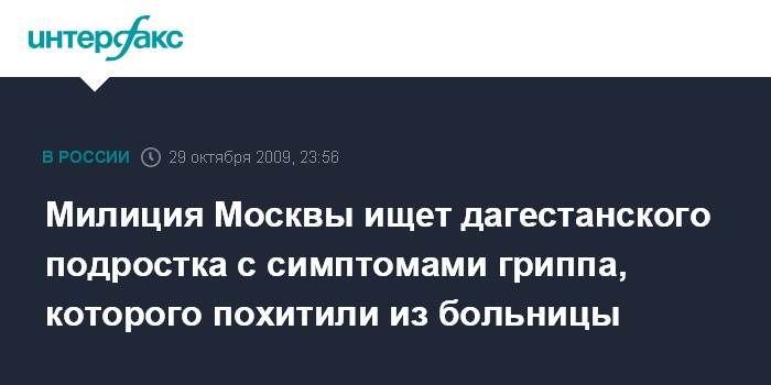 Милиция Москвы ищет дагестанского подростка с симптомами гриппа, которого похитили из больницы