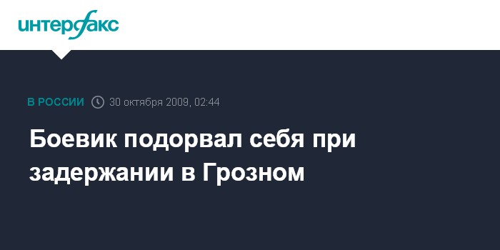Грозный. 30 октября. ИНТЕРФАКС - В Грозном при попытке задержания участник незаконных вооруженных формирований осуществил самоподрыв, сообщил "Интерфаксу" министр внутренних дел Чечни Руслан Алханов.