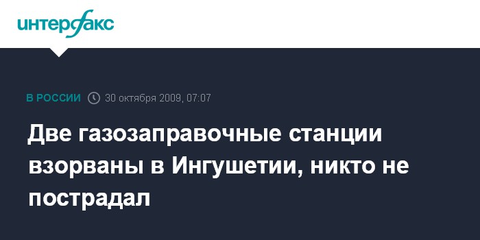 Собеседник агентства также сообщил, что другой факт подрыва ГЗС был зафиксирован минувшей ночью в Назрановском районе республики.
