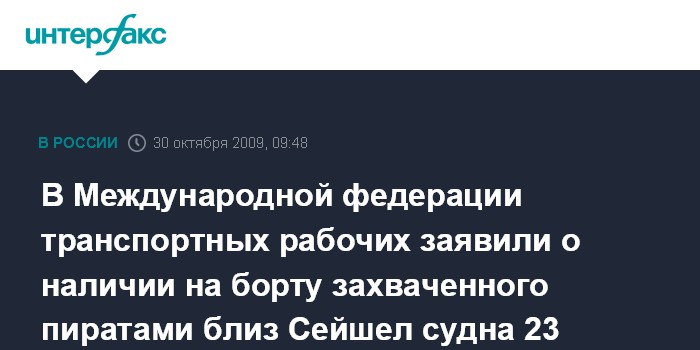 В Международной федерации транспортных рабочих заявили о наличии на борту захваченного пиратами близ Сейшел судна 23 россиян
