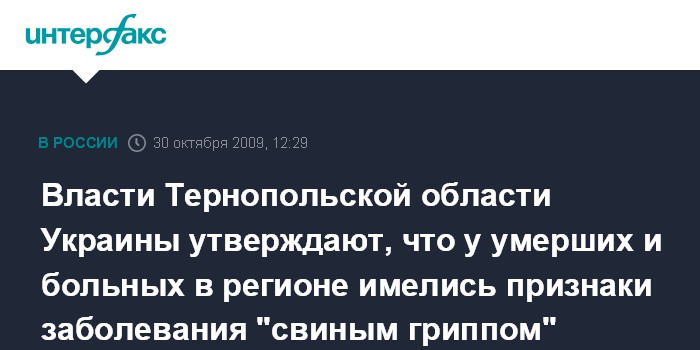 Власти Тернопольской области Украины утверждают, что у умерших и больных в регионе имелись признаки заболевания "свиным гриппом"