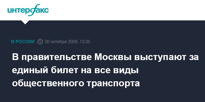 Москва. 30 октября. INTERFAX.RU - Руководитель департамента транспорта и связи Москвы Василий Кичеджи выступает за введение единого билета на все виды общественного транспорта. "Моя мечта, чтобы у нас появился единый билет на все виды общественного транспорта с единой ценой, которая не менялась бы длительное время", - сказал В.Кичеджи на пресс-конференции в центральном офисе "Интерфакса" в пятницу. Он добавил, что для осуществления этой мечты необходима "политическая воля во всей стране".