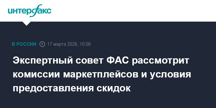 Москва. 17 марта. INTERFAX.RU - Экспертный совет по развитию конкуренции в области информационных технологий при Федеральной антимонопольной службе (ФАС) России в пятницу, 20 марта, рассмотрит несколько из оставшихся до сих пор неурегулированными вопросов функционирования маркетплейсов, в том числе условия предоставления скидок на товары за счет цифровой площадки и принципы установления комиссий для продавцов.