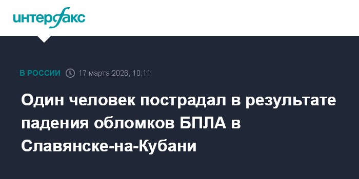 Один человек пострадал в результате падения обломков БПЛА в Славянске-на-Кубани