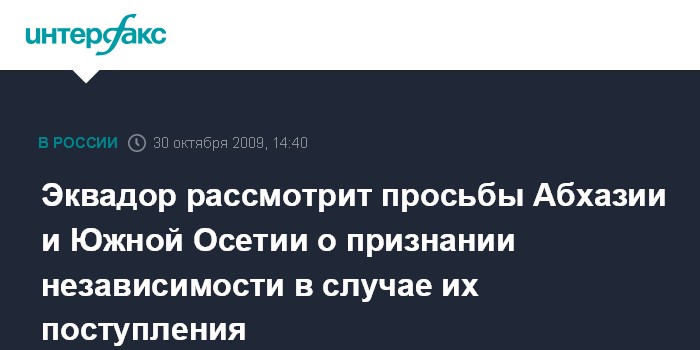 Эквадор рассмотрит просьбы Абхазии и Южной Осетии о признании независимости в случае их поступления