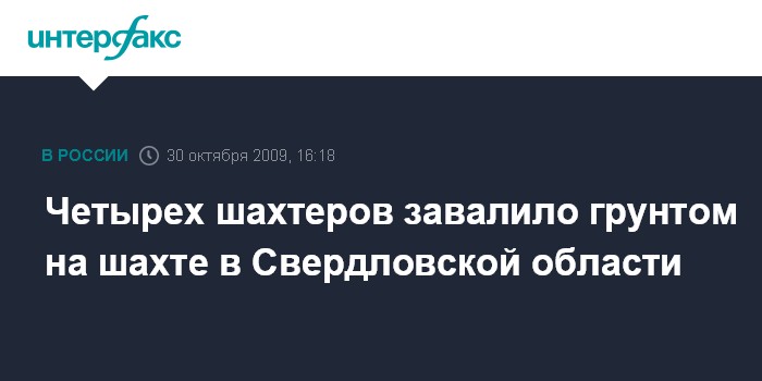 Четырех шахтеров завалило грунтом на шахте в Свердловской области