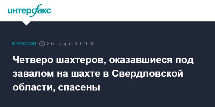 Четверо шахтеров, оказавшиеся под завалом на шахте в Свердловской области, спасены