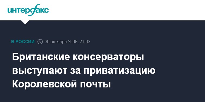 Лондон. 30 октября. ИНТЕРФАКС - Представители Консервативной партии Великобритании выступают за полную приватизацию Королевской почты, сообщила в пятницу британская газета Guardian.