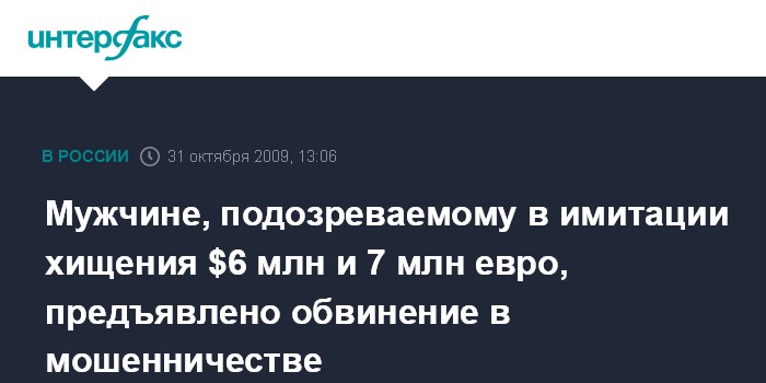 Мужчине, подозреваемому в имитации хищения $6 млн и 7 млн евро, предъявлено обвинение в мошенничестве