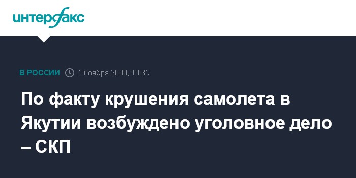 По факту крушения самолета в Якутии возбуждено уголовное дело – СКП