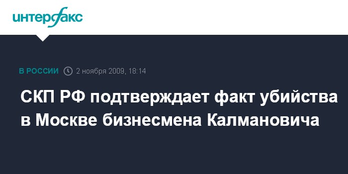 СКП РФ подтверждает факт убийства в Москве бизнесмена Калмановича