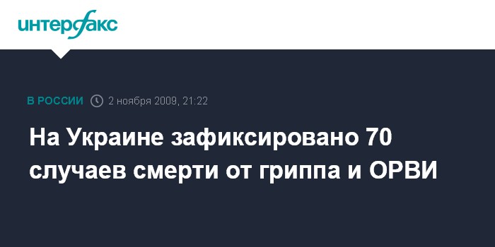 Киев. 2 ноября. INTERFAX.RU - 70 человек, в том числе трое детей и две беременные, умерли в Украине в результате заболевания гриппом, ОРВИ.