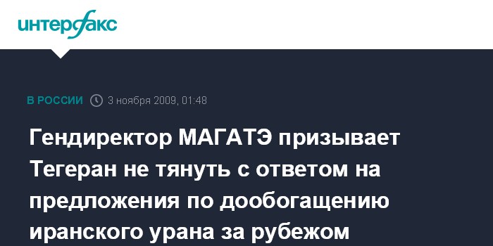 "Я призываю Иран ответить как можно скорее на мои предложения, основанные на инициативах России, США и Франции, - заявил гендиректор МАГАТЭ. - Эти инициативы направлены на привлечение Ирана к мерам, способствующим построению доверия".