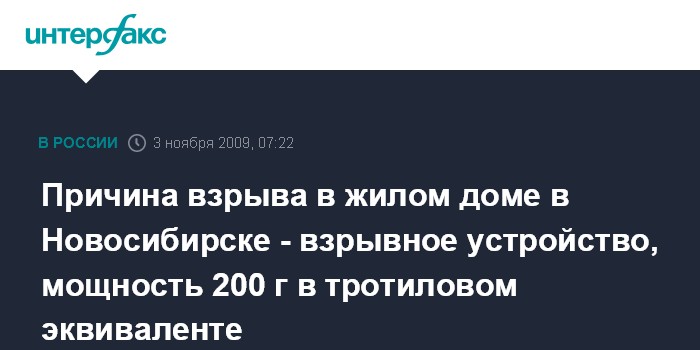 Как сообщили агентству "Интерфакс-Сибирь" в пресс-службе ГУВД по Новосибирской области, по предварительным данным, на 4 этаже жилого дома по ул.Сибирская, 28 примерно в 19:30 по местному времени сработало неустановленное взрывное устройство мощностью не более 200 г в тротиловом эквиваленте.