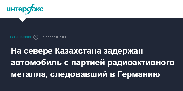 Астана. 27 апреля. ИНТЕРФАКС-КАЗАХСТАН - Груз с радиоактивным металлом, уровень гамма-фона которого в 47 раз превышает допустимую норму, задержан на таможенном посту "Жанажол" в Северо-Казахстанской области на границе с Россией, сообщили в воскресенье в МЧС Казахстана.