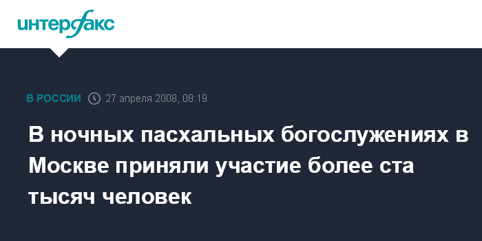 Он наполнил, что в 2007 году пасхальные богослужения в столице посетили около 100 тыс. москвичей и гостей столицы.