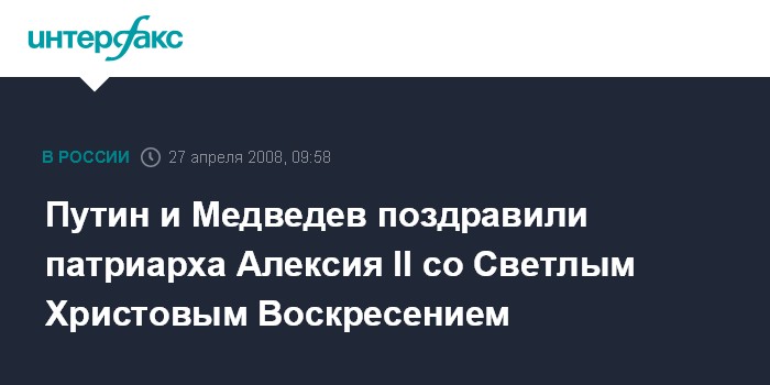 Избранный президент России Дмитрий Медведев также поздравил патриарха Алексия II со Светлым Христовым Воскресением.