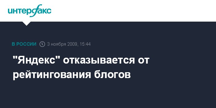 Москва. 3 ноября. INTERFAX.RU – Интернет-поисковик "Яндекс" закрывает публикацию рейтингов популярных блогов, об этом на страницах корпоративного Интернет-дневника, сообщил менеджер проекта "Поиск по блогам" Антон Волнухин.