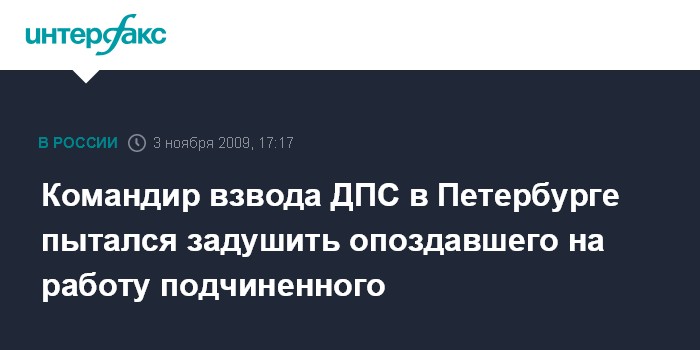 Командир взвода ДПС в Петербурге пытался задушить опоздавшего на работу подчиненного