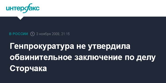 Москва. 3 ноября. INTERFAX.RU - Генеральная прокуратура России возвратила на дополнительное расследование одно из самых громких уголовных дел последнего времени - в отношении заместителя министра финансов РФ Сергея Сторчака.