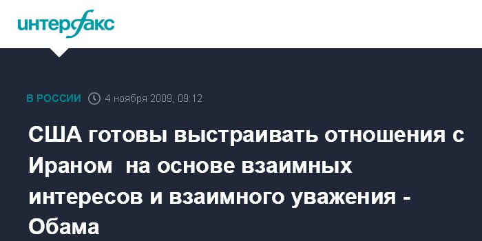 США готовы выстраивать отношения с Ираном на основе взаимных интересов и взаимного уважения - Обама