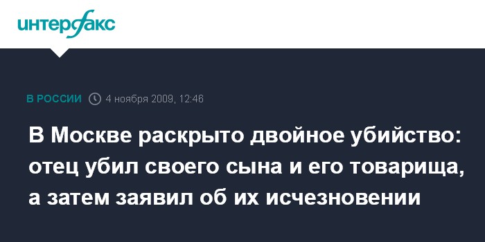 В Москве раскрыто двойное убийство: отец убил своего сына и его товарища, а затем заявил об их исчезновении