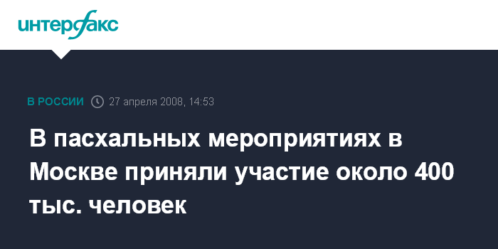 В пасхальных мероприятиях в Москве приняли участие около 400 тыс. человек