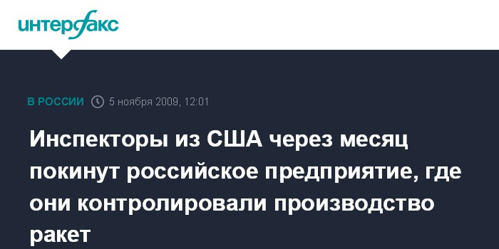 Инспекторы из США через месяц покинут российское предприятие, где они контролировали производство ракет