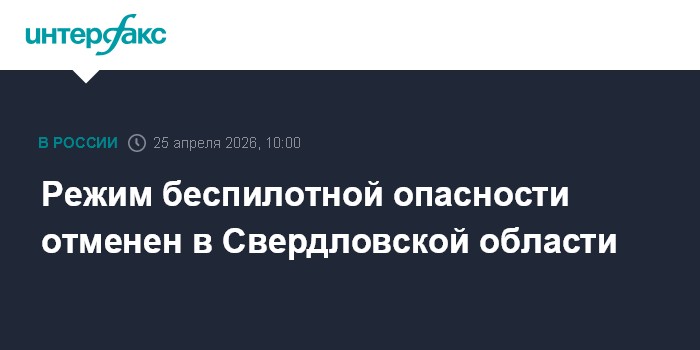 Москва. 25 апреля. INTERFAX.RU - Губернатор Свердловской области Денис Паслер сообщил в своем канале MAX об отмене режима опасности атаки БПЛА.