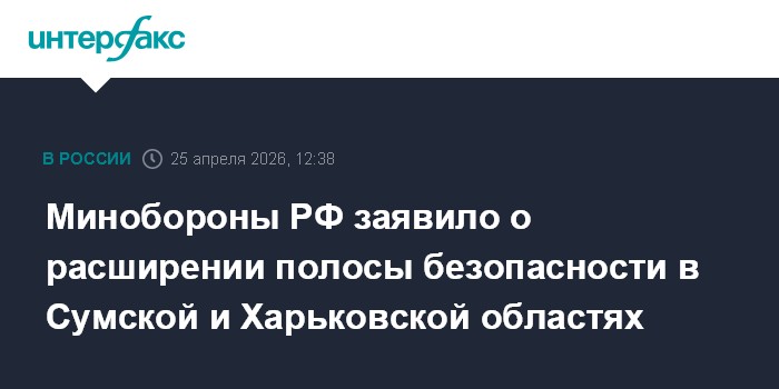 Минобороны РФ заявило о расширении полосы безопасности в Сумской и Харьковской областях