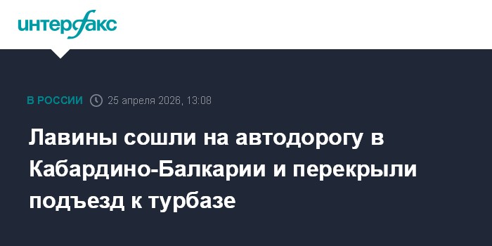 Москва. 25 апреля. INTERFAX.RU - Подъезд к турбазе "Чегем" в Кабардино-Балкарии оказался перекрытым из-за схода снежных лавин на автомобильную дорогу регионального значения, сообщает Минтранс республики в субботу.
