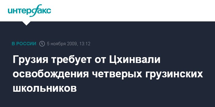 Тбилиси. 5 ноября. INTERFAX.RU - Министерство внутренних дел Грузии требует немедленного освобождения задержанных южноосетинской стороной четверых грузинских школьников.