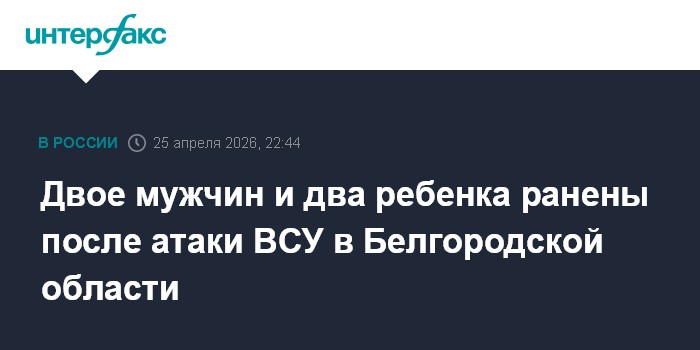 Москва. 25 апреля. INTERFAX.RU - Четыре мирных жителя, в том числе двое детей, пострадали в Белгородской области в результате украинской атаки, сообщил глава региона Вячеслав Гладков.