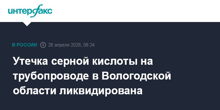 Москва. 26 апреля. INTERFAX.RU - Губернатор Вологодской области Георгий Филимонов сообщил о ликвидации утечки серной кислоты на трубопроводе, возникшей вследствие атаки БПЛА ВСУ.