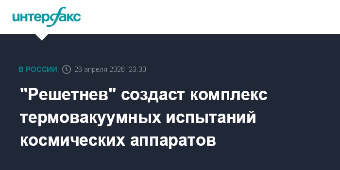 Москва. 26 апреля. INTERFAX.RU - АО "Решетнев" изготовит комплекс термовакуумных испытаний космических аппаратов, сообщили в "Роскосмосе" в воскресенье.