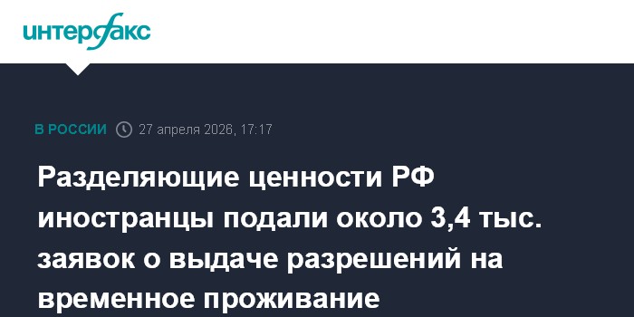 Разделяющие ценности РФ иностранцы подали около 3,4 тыс. заявок о выдаче разрешений на временное проживание