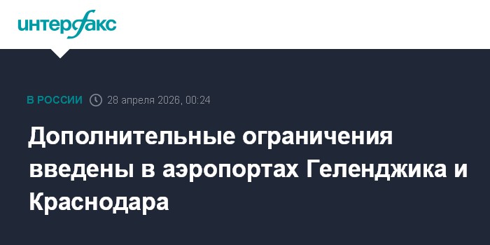 "Введены дополнительные временные ограничения на прием и выпуск воздушных судов (...) Согласно действующим NOTAM, аэропорт Геленджик принимает и отправляет рейсы с 8:30 до 20:00, Краснодар - с 09:00 до 23:00 МСК.", - говорится в сообщении, размещенном в канале Росавиации в мессенджере Max.