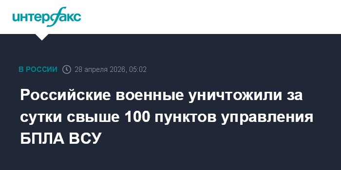 Москва. 28 апреля. INTERFAX.RU - Группировки войск "Север", "Запад", "Восток" и "Южная" в течение суток нанесли поражение 104 пунктам управления беспилотной авиацией ВСУ, заявили российские военные во вторник.