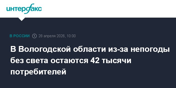 Москва. 28 апреля. INTERFAX.RU - В Вологодской области из-за снегопада и шквалистого ветра нарушено электроснабжение 1170 населенных пунктов, сообщил губернатор региона Георгий Филимонов.