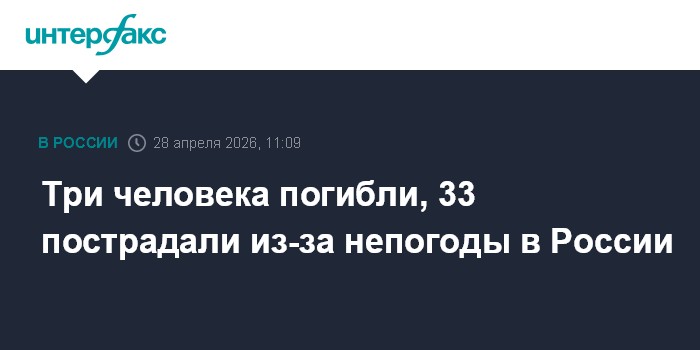 Москва. 28 апреля. INTERFAX.RU - Количество жертв мокрого снега и сильного ветра на территории Сибирского, Приволжского, Центрального и Северо-Западного федеральных округов увеличилось до трех, пострадали 33 человека, сообщила пресс-служба МЧС РФ во вторник.