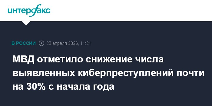 Москва. 28 апреля. INTERFAX.RU - В России зарегистрировано почти на 30% меньше преступлений в сфере IT-технологий в первом квартале текущего года по сравнению с аналогичным периодом 2025 года, сообщили в пресс-центре МВД