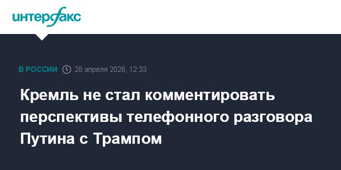 Москва. 28 апреля. INTERFAX.RU - Пресс-секретарь президента РФ Дмитрий Песков заявил, что на сегодняшний день ему нечего сказать относительно возможности проведения телефонного разговора президента РФ Владимира Путина и президента США Дональда Трампа в ближайшее время.