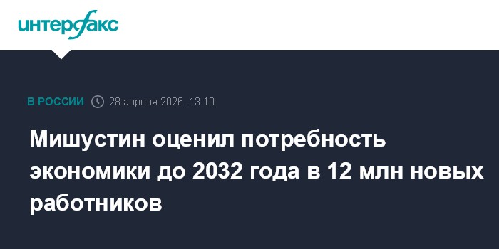 Москва. 28 апреля. INTERFAX.RU - Российской экономике до 2032 года потребуется почти 12 миллионов новых сотрудников, заявил на просветительском марафоне общества "Знание" премьер-министр Михаил Мишустин.
