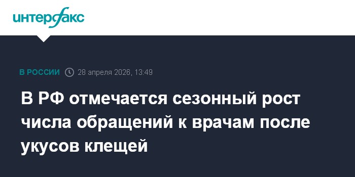 Москва. 28 апреля. INTERFAX.RU - В России наблюдается сезонное увеличение количества обращений граждан к врачам с укусами клещей, однако показатели соответствуют среднемноголетним значениям, сообщили в Роспотребнадзоре по итогам совещания главы Роспотребнадзора Анны Поповой с руководителями территориальных управлений ведомства.