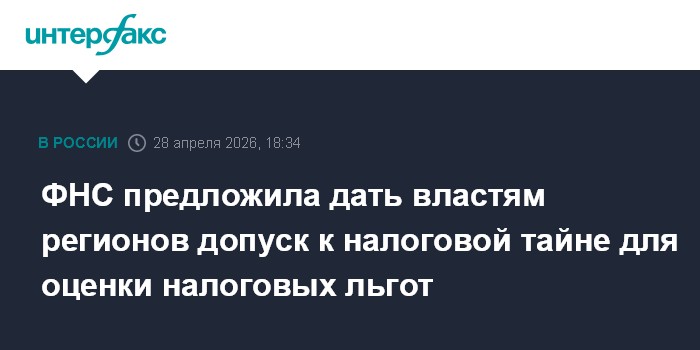 ФНС предложила дать властям регионов допуск к налоговой тайне для оценки налоговых льгот