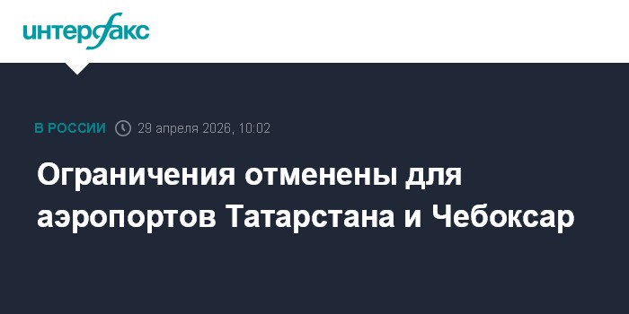 Москва. 29 апреля. INTERFAX.RU - Для аэропортов Татарстана (Казани, Бугульмы и Нижнекамска) и аэропорта Чебоксар отменили ограничения на прием и отправку рейсов, сообщила Росавиация.